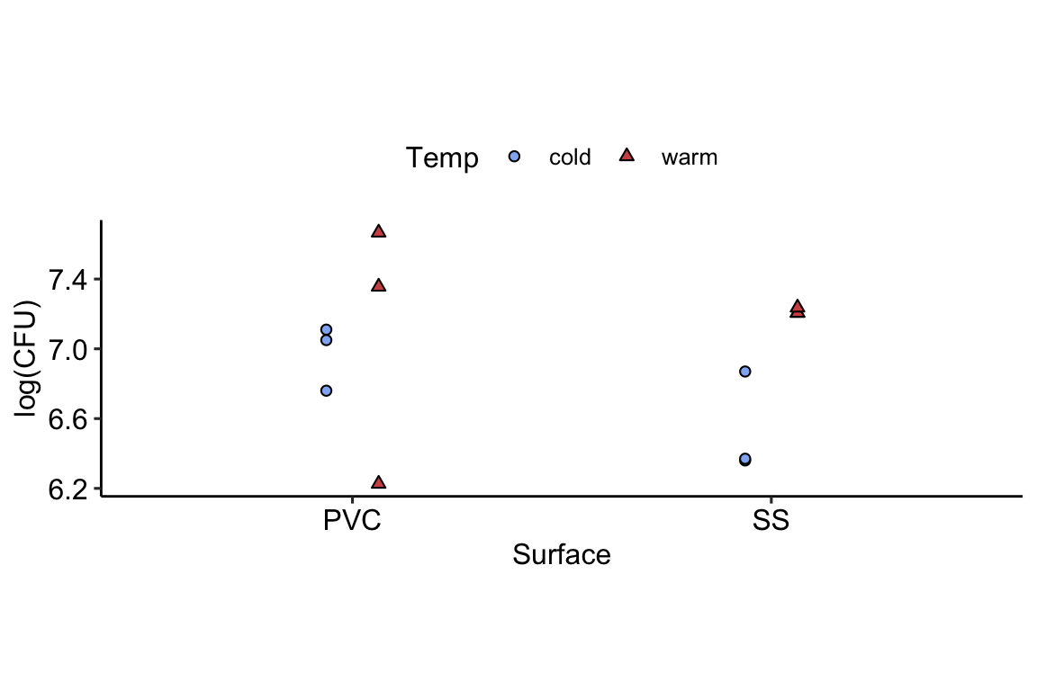 ## Formula: log_CFU ~ 1 + (1 | Surface) + (1 | Temp) + (1 | Surface:Temp)