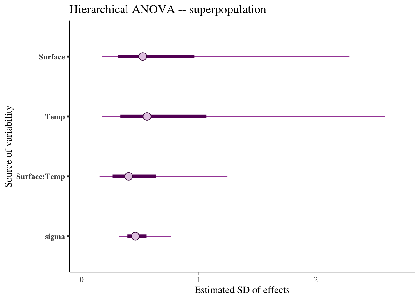 We can now investigate the variances for the superpopulation \(\sigma^2_m\):